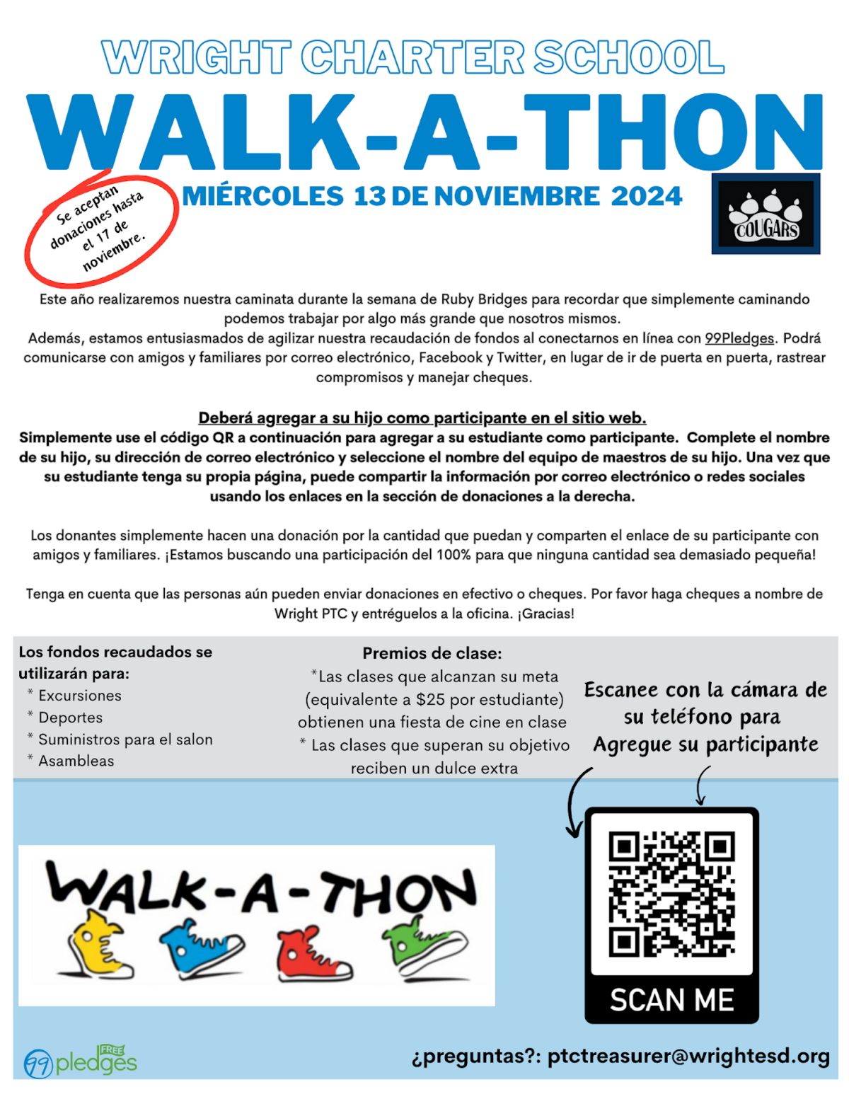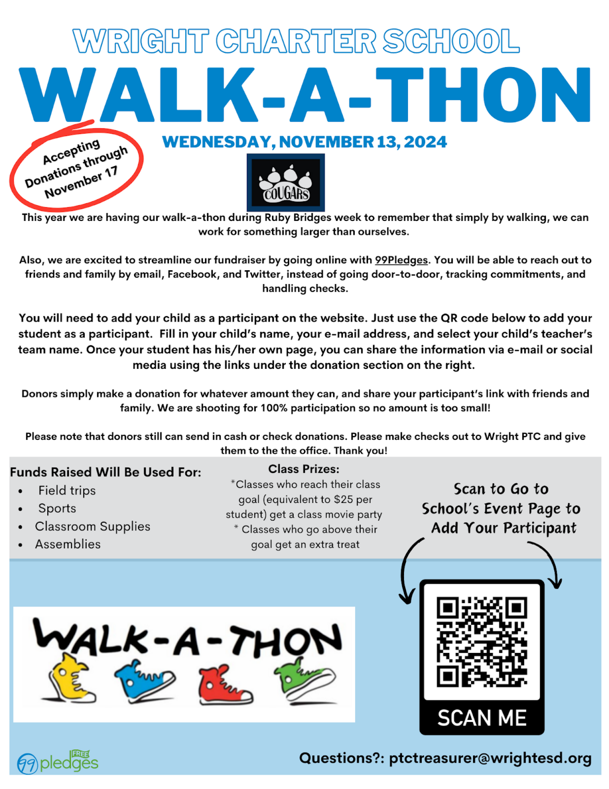 Our annual Walk-A-Thon will be on Wendesday, November 13th.